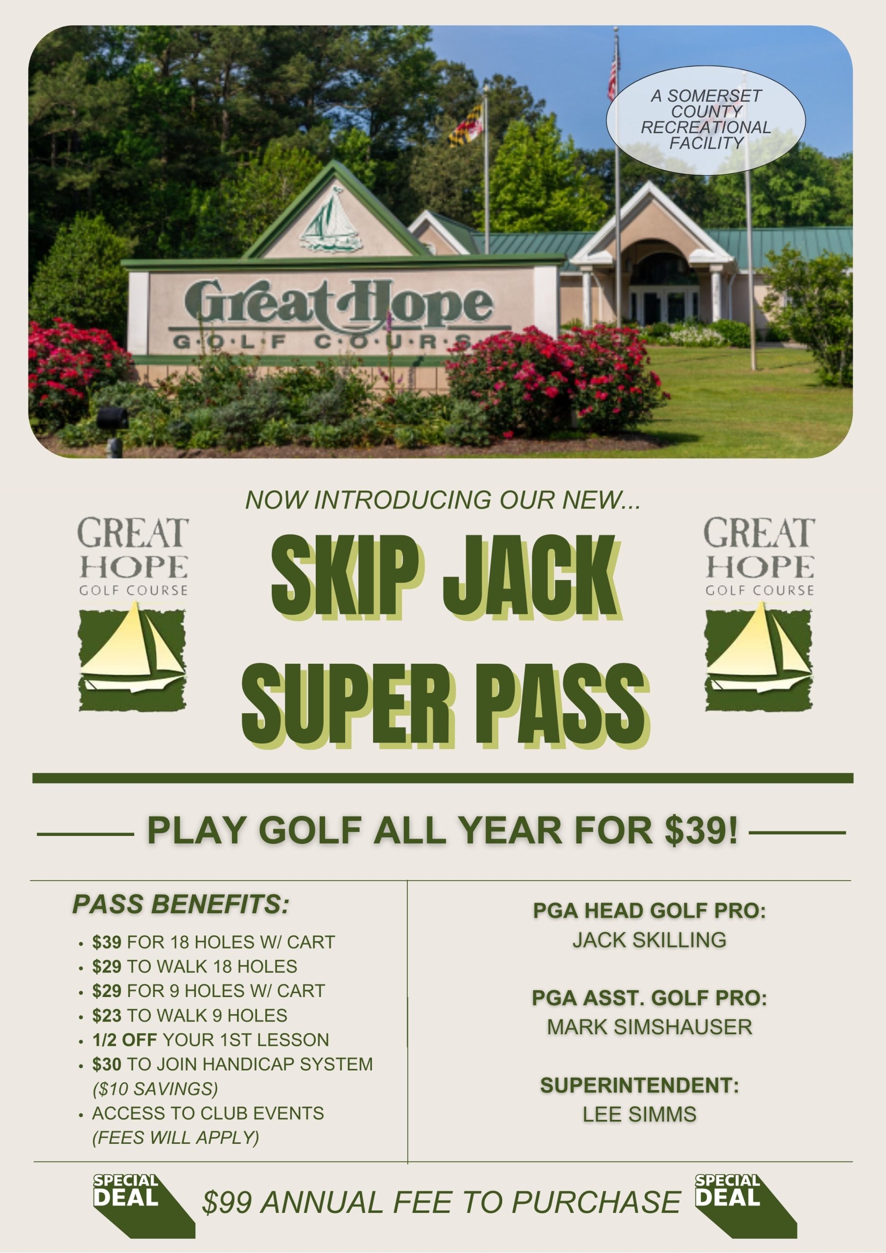 Play Golf all year for $44.00 per round, including cart!!